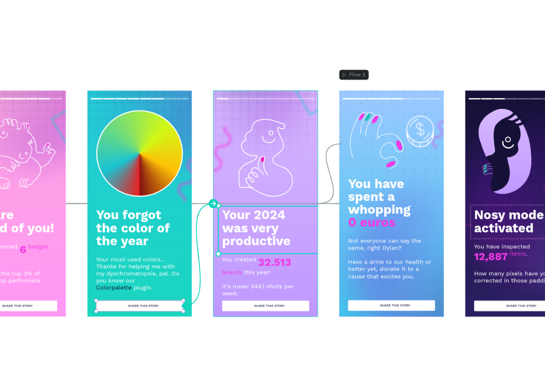 To take your transitions one step further, consider animations that help boards look fully interactive. An animation is a visual movement or transition applied to UI elements when switching between states, screens, or components within a prototype or interactive design.