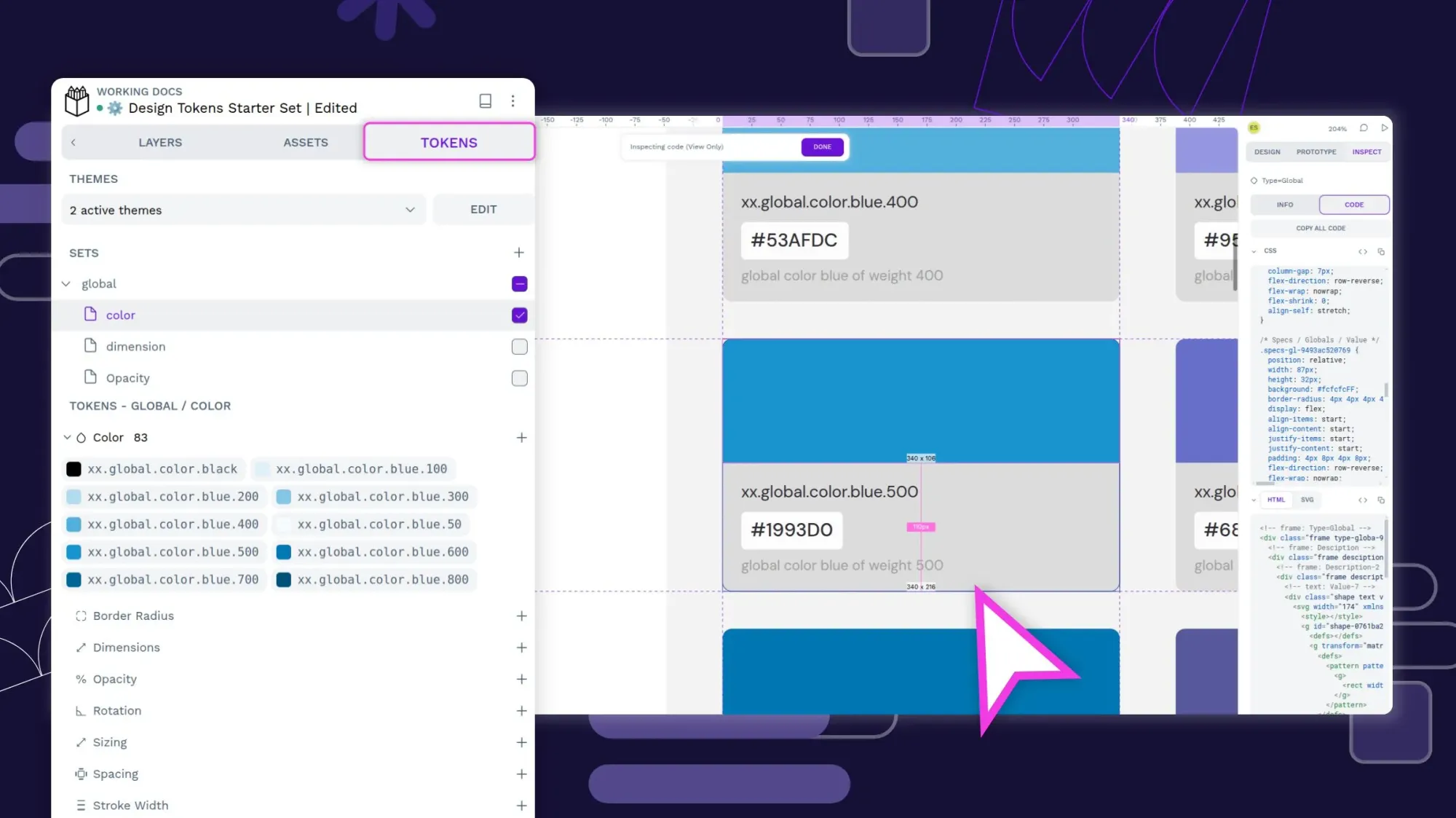 Design tokens are a way to save and share named design values across your design and development teams. For example, you might name the shade of red you use for error messages error.text or a typography composite token that features all the design properties for your page.title.