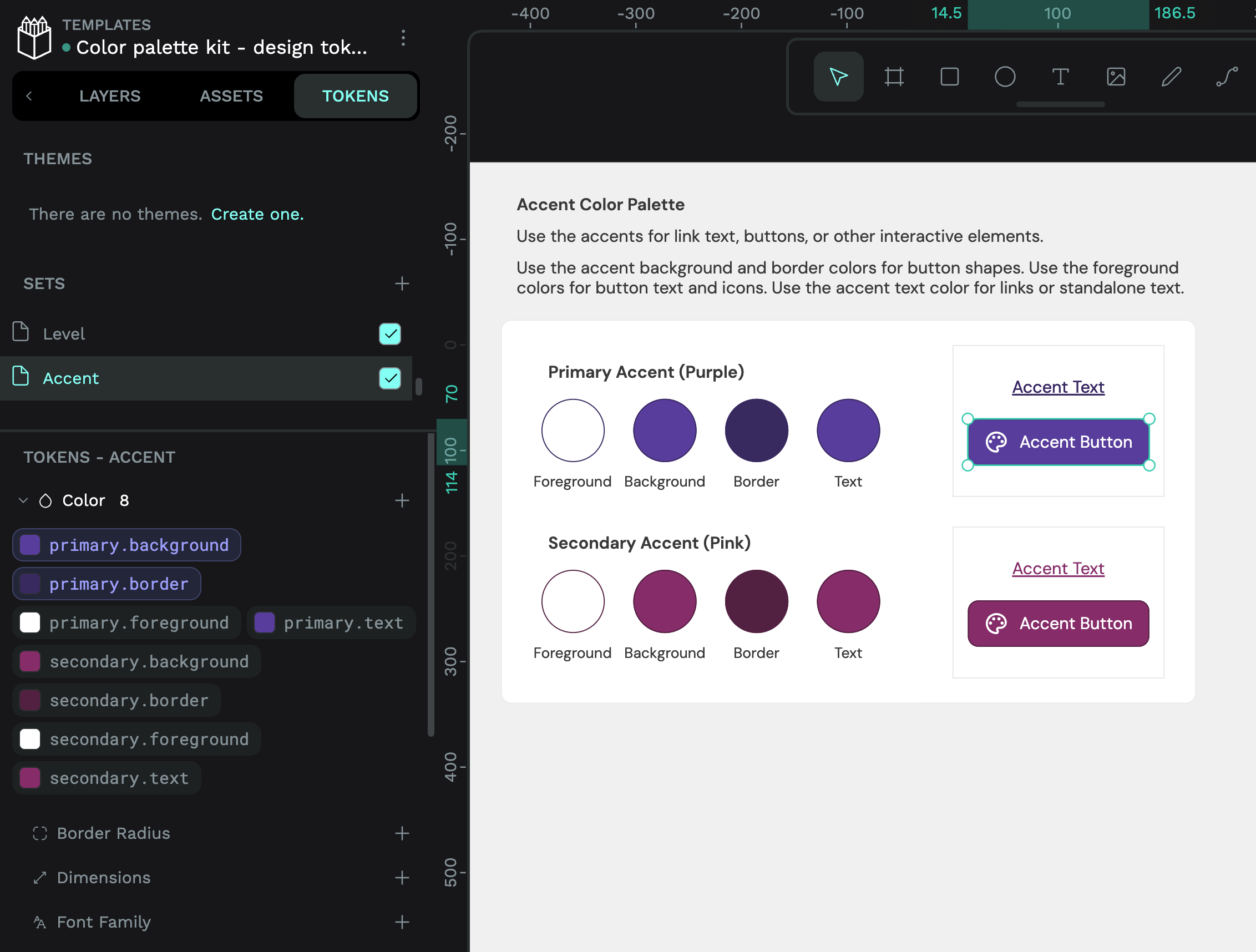 You can import the template and explore the demos, or export the tokens to use in another file.